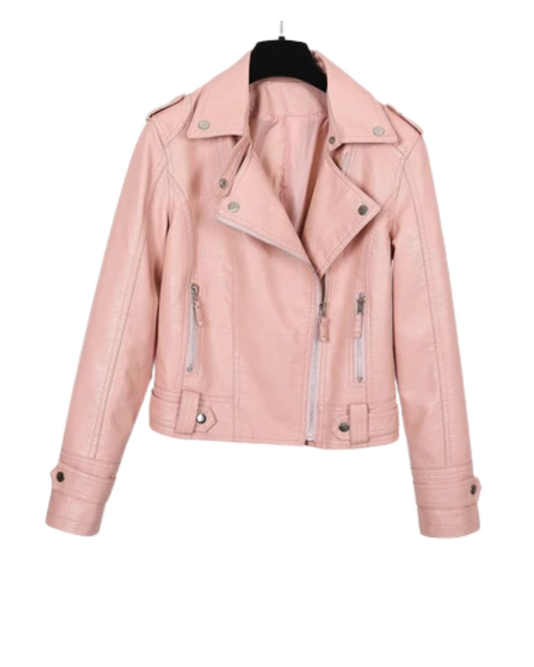 أضيفي لمسة جريئة وعصرية لخزانة ملابسك مع السترة الجلدية النسائية القصيرة – أناقة كورية وجودة عالية لكل يوم.